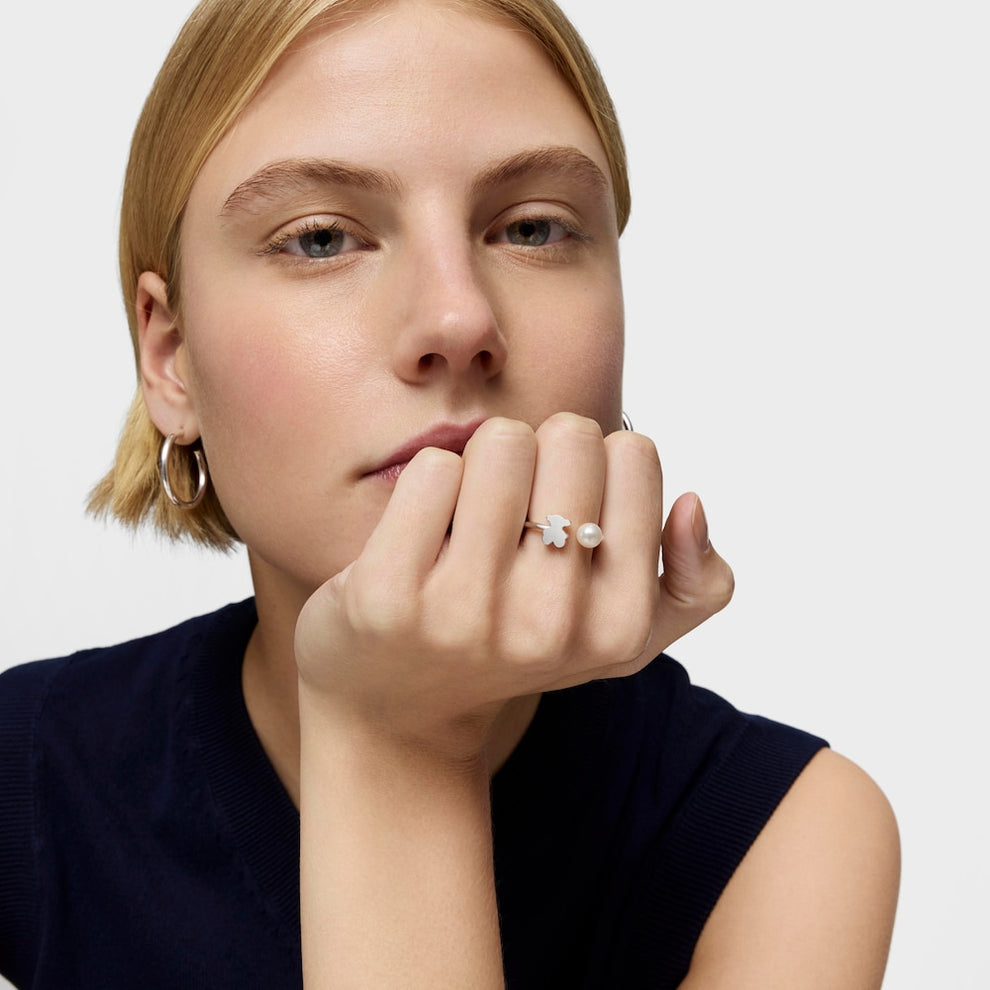 Sweet Dolls sterling silver open ring with cultured freshwater pearl and bear motif. Size of bear 8mm. Size of the cultured pearl 6mm.You can buy the silver Sweet Dolls Open ring with cultured pearl at the online store. Find out how easy it is to buy rings at .