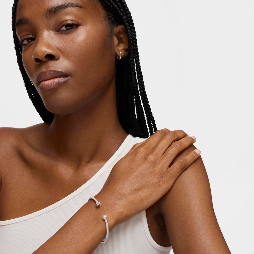 Mesh bangle in sterling silver with 0.65-0.7 cm pearl. Size 0.6 cm.