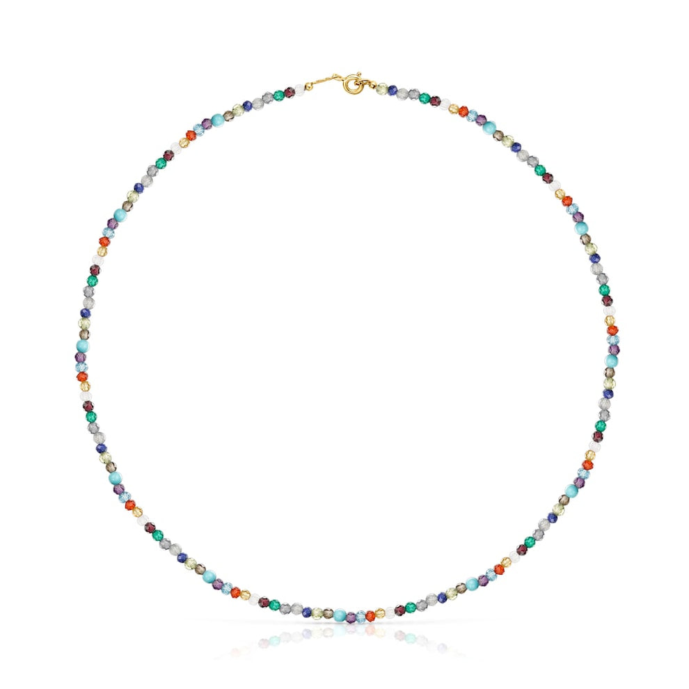 Good Vibes choker in silver vermeil with 3.2mm faceted balls in amethyst, blue topaz, carnelian, citrine, rock crystal quartz, garnet, chrysoprase, iolite, labradorite, lapis lazuli, peridot, smoky quartz and a smooth 3.5mm turquoise ball. Choker length 45cm. Sterling silver plated with 18kt gold with a thickness of 3 to 5 microns and with no other metal between them. Production technique Mechanized.You can buy the Silver Vermeil Good Vibes Choker with Gemstones at the online store. Find out how easy it is to buy chokers at .