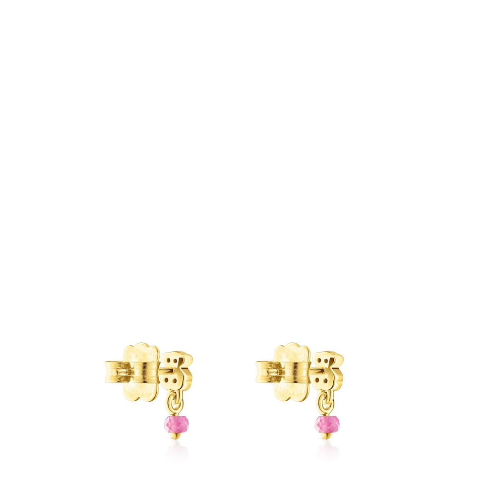 New Motif earrings in silver vermeil with a chrome diopside bear motif and a treated ruby detail. Push back. Size of bear 4.6mm x 3.8mm.