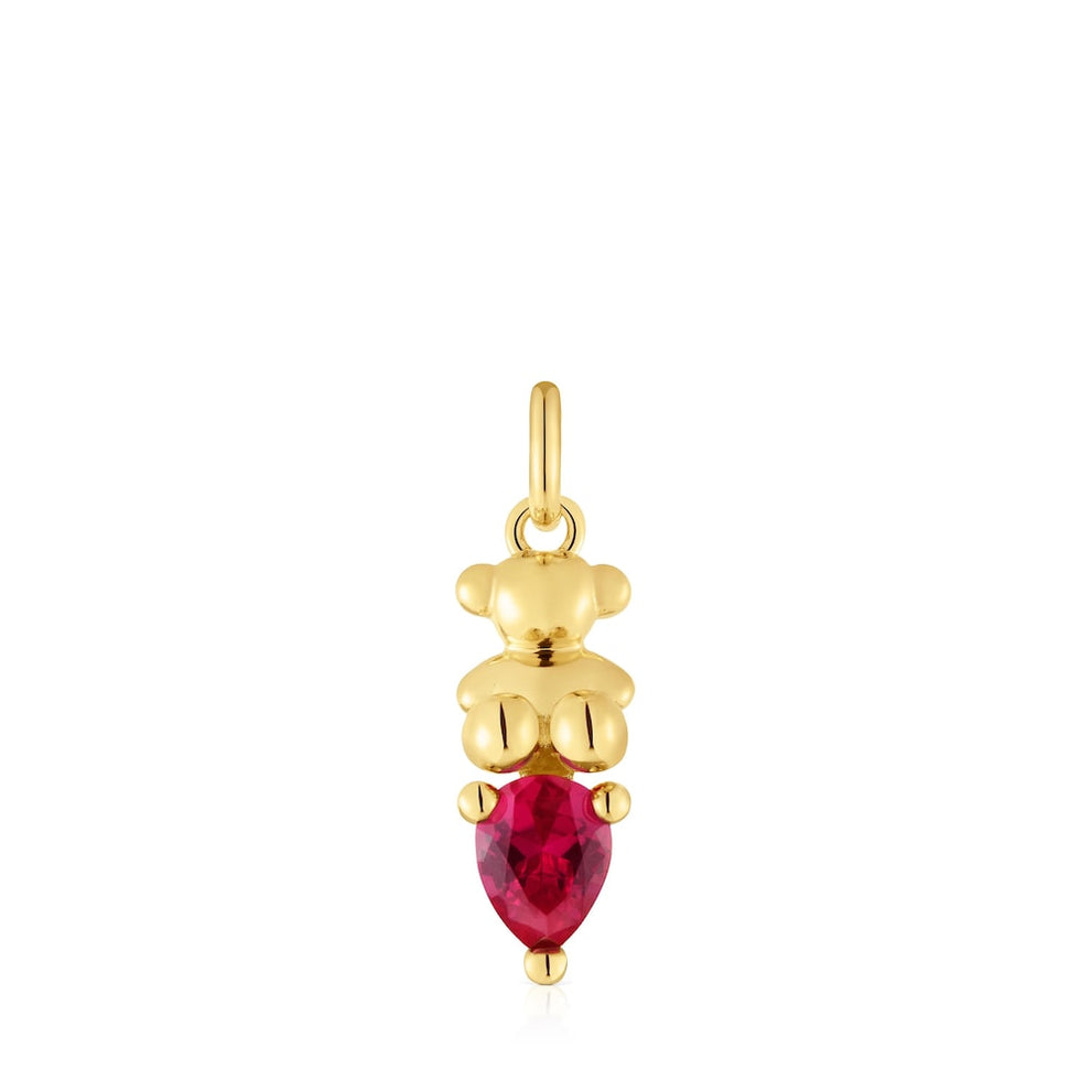 Small Bold Bear LGG bear motif pendant in 18kt gold-plated silver with faceted pear-cut ruby. Motif size 19 mm. This item does not include the chain. Piece made of 18to23kt gold-plated sterling silver with a thickness of 3microns. This quality guarantees a greater durability of the jewel. Note Piece created with lab-grown gemstones.
