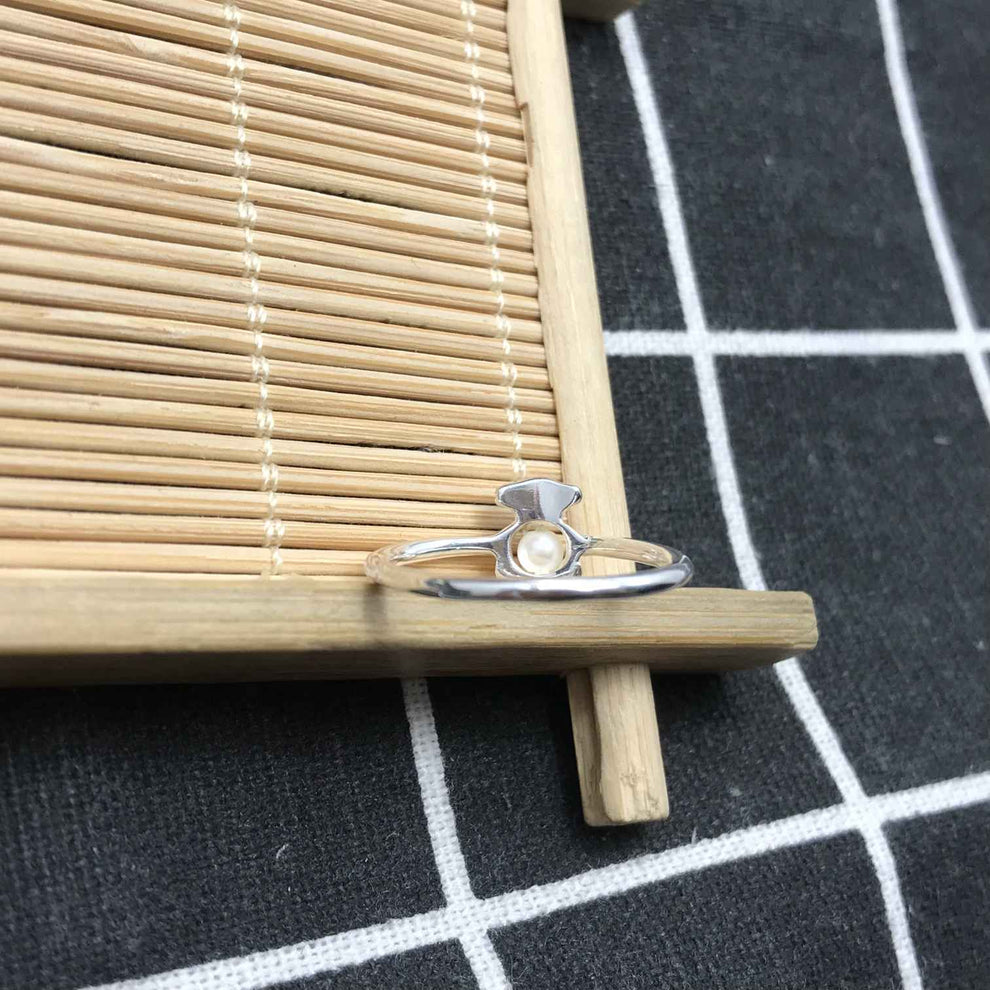 Small sterling silver ring with a bear motif and a cultured pearl in the center I-Bear. Size of the cultured pearl: 3-3.5 mm. Motif size: 8 mm. Ring thickness: 1.3 mm.