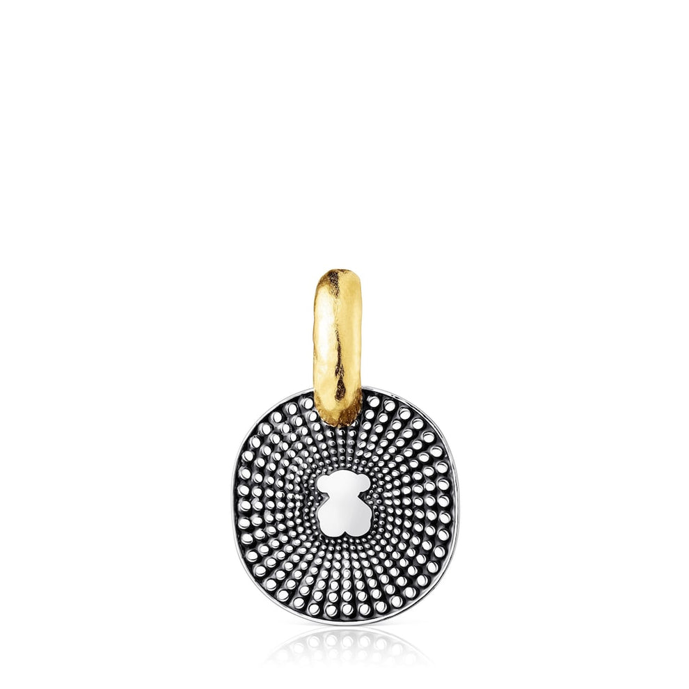 Oursin pendant with bear in sterling silver, black enamel and an oval silver vermeil ring. Pendant size 25mm. This item does not include the chain. Sterling silver plated with 18kt gold with a thickness of 3 to 5microns and with no other metal between them. Production technique Casting.