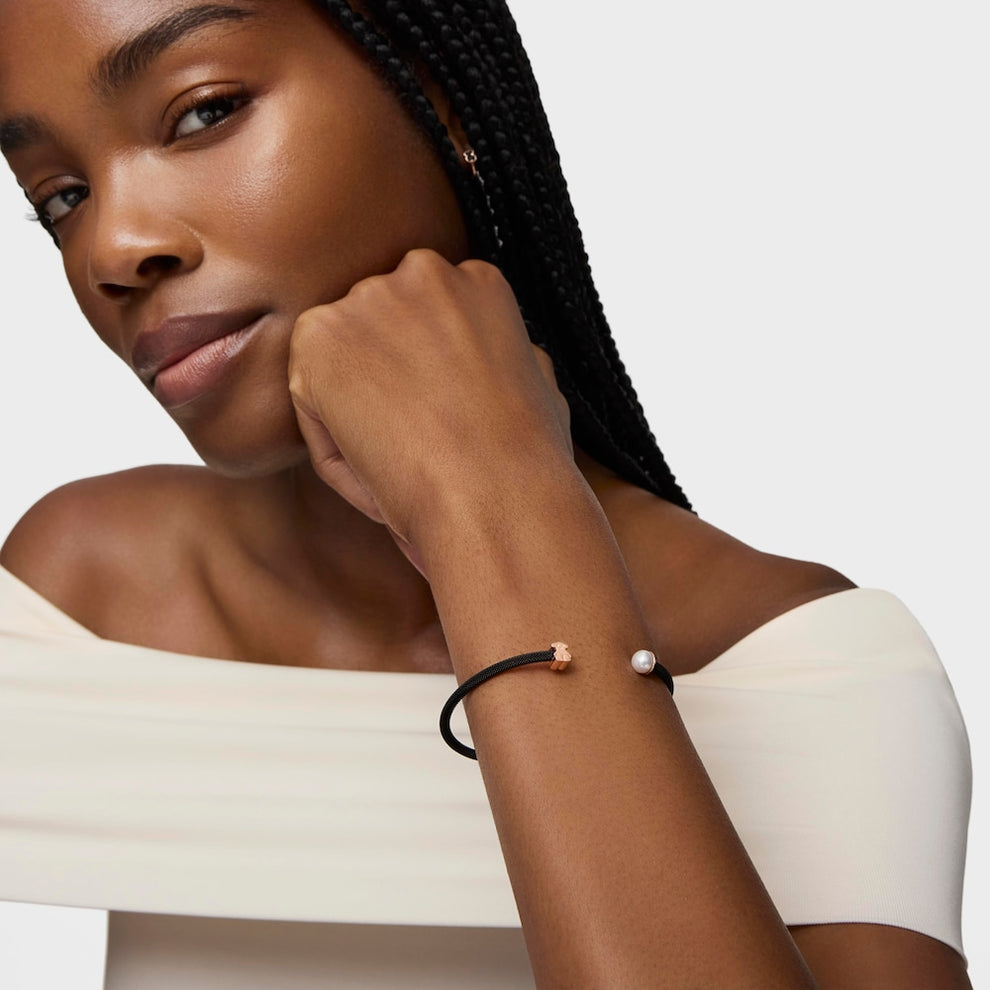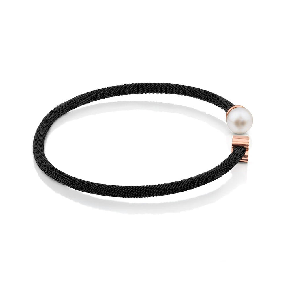 Icon Mesh bangle in black IP steel and rose vermeil silver with pearl. Size 0.6cm. Pearl 0.7 cm. Length 13cm. Vermeil Sterling silver plated with a layer of 18kt rose gold.TOUS Icon Mesh bangle in black IP steel and rose vermeil silver with pearl. Size 0.6cm. Pearl 0.7 cm. Length 13cm. Vermeil Sterling silver plated with a layer of 18kt rose gold.