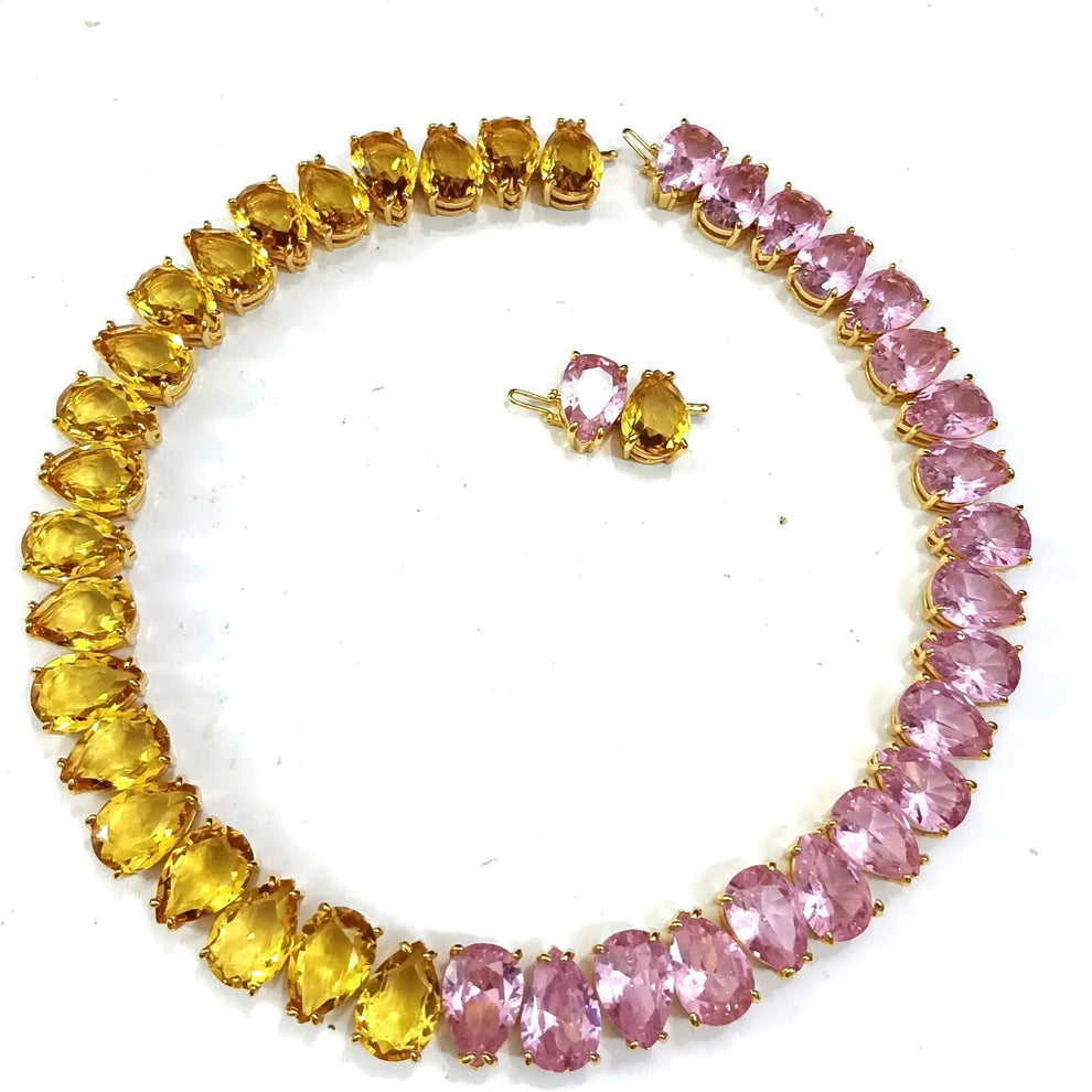 Millenia necklace Pear cut crystals Multicolored tone plated