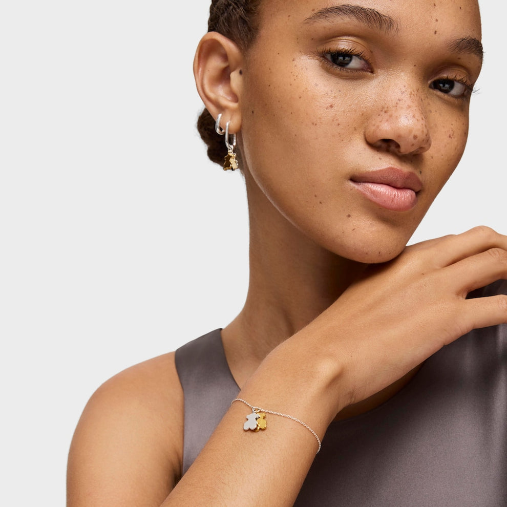 Sweet Dolls chain bracelet with 18kt gold plating over silver, sterling silver and bear pendant motifs. Measurement of bear 10mm. Bracelet length 24cm. Slider clasp. It is made of sterling silver with 18to23kt gold plating and has a thickness of 3microns. This quality guarantees a greater durability of the jewel.