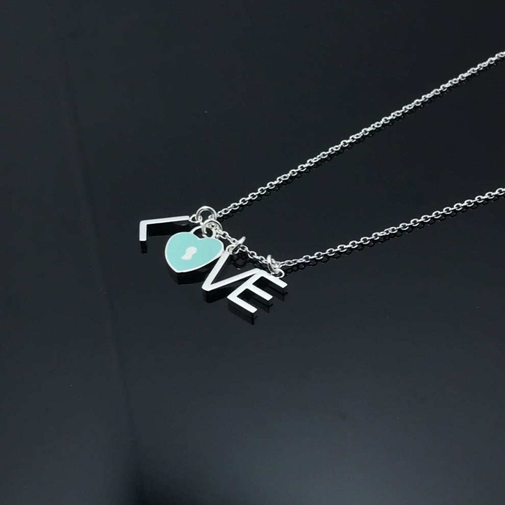 Tiffany & Co. Enamel 'Love' Charm Pendant Necklace