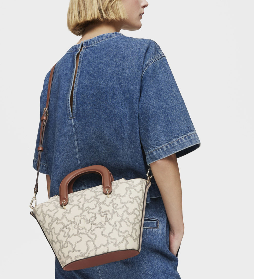 Small canvas carrycot bag with faux leather details in beige and Kaos Icon print. Zip closure. Open inner pocket. Fixed handles and adjustable and detachable shoulder strap. Measurements (height x width x depth) 21 x 37 x 12 cm. Kaos Icon beige carrycot S 148.06 (22-06-2025) esdemarca.com Ref 2002127801
