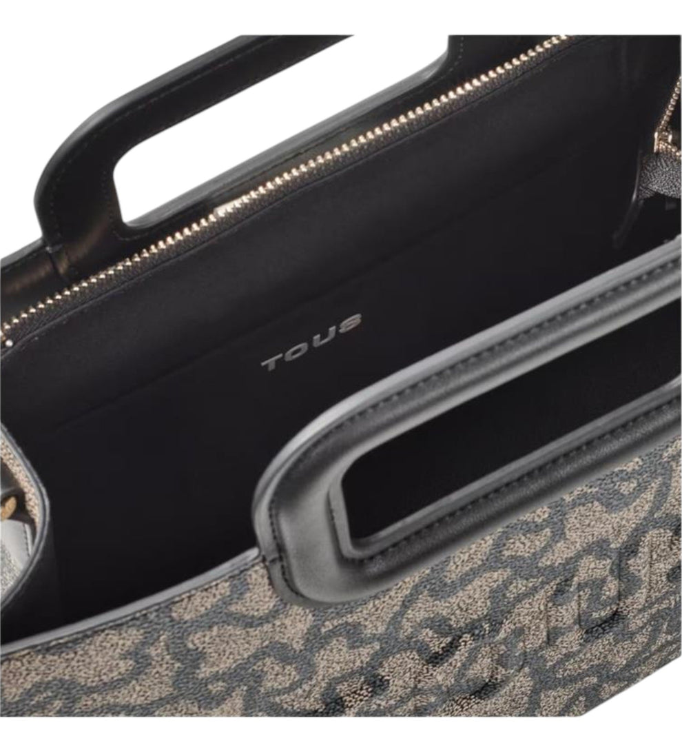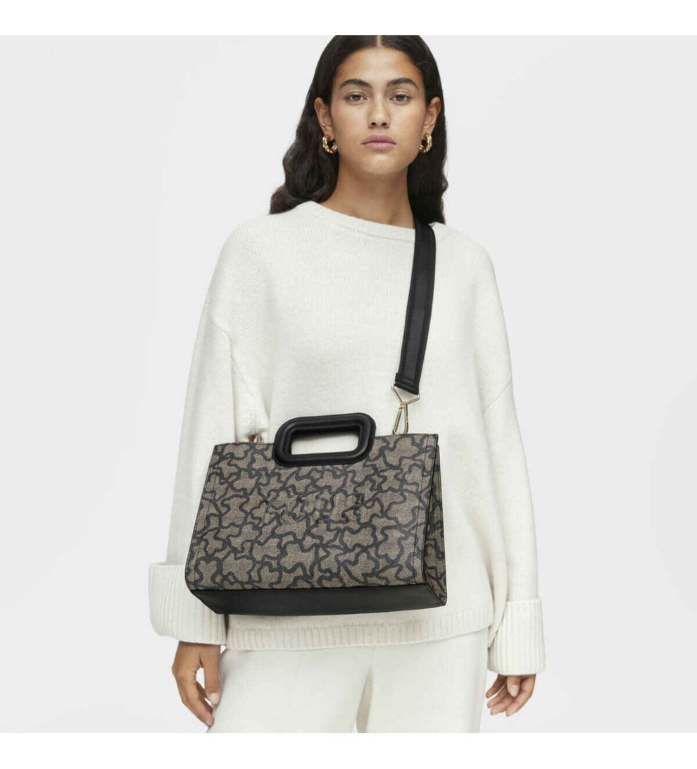 Large shopping bag from the Amaya Kaos Icon collection in leather-effect vinyl in black multi colour with bear print. Magnetic button closure. Shoulder straps. Exterior flat pocket and two interior zipped pockets. Measurements 40 x 33 x 20cm M. Amaya K Icon Shopping Bag Black 119 (22-06-2025) esdemarca.com Ref 2001946351