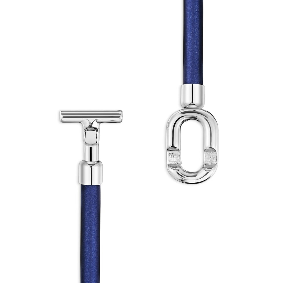 MANIFESTO bracelet in blue with sterling silver closure. Total length 20cm. Special Manifesto closure. Size of the clasp 28,4 x 14,6mm.