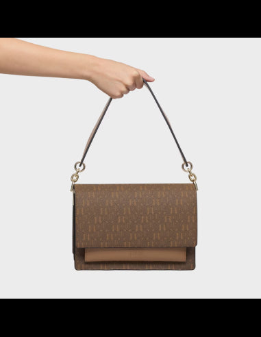 Discover the functional elegance of the medium Audree Buckles Silhouette shoulder bag, crafted in durable canvas with polyurethane details in a versatile earth tone colour. With two compartments, a front pocket and adjustable handles, it combines practicality and style for any occasion.Discover the elegance and functionality of the medium Audree Buckles Silhouette shoulder bag in earth tone, with a versatile canvas design, practical compartments and adjustable handles. Ideal for everyday use.