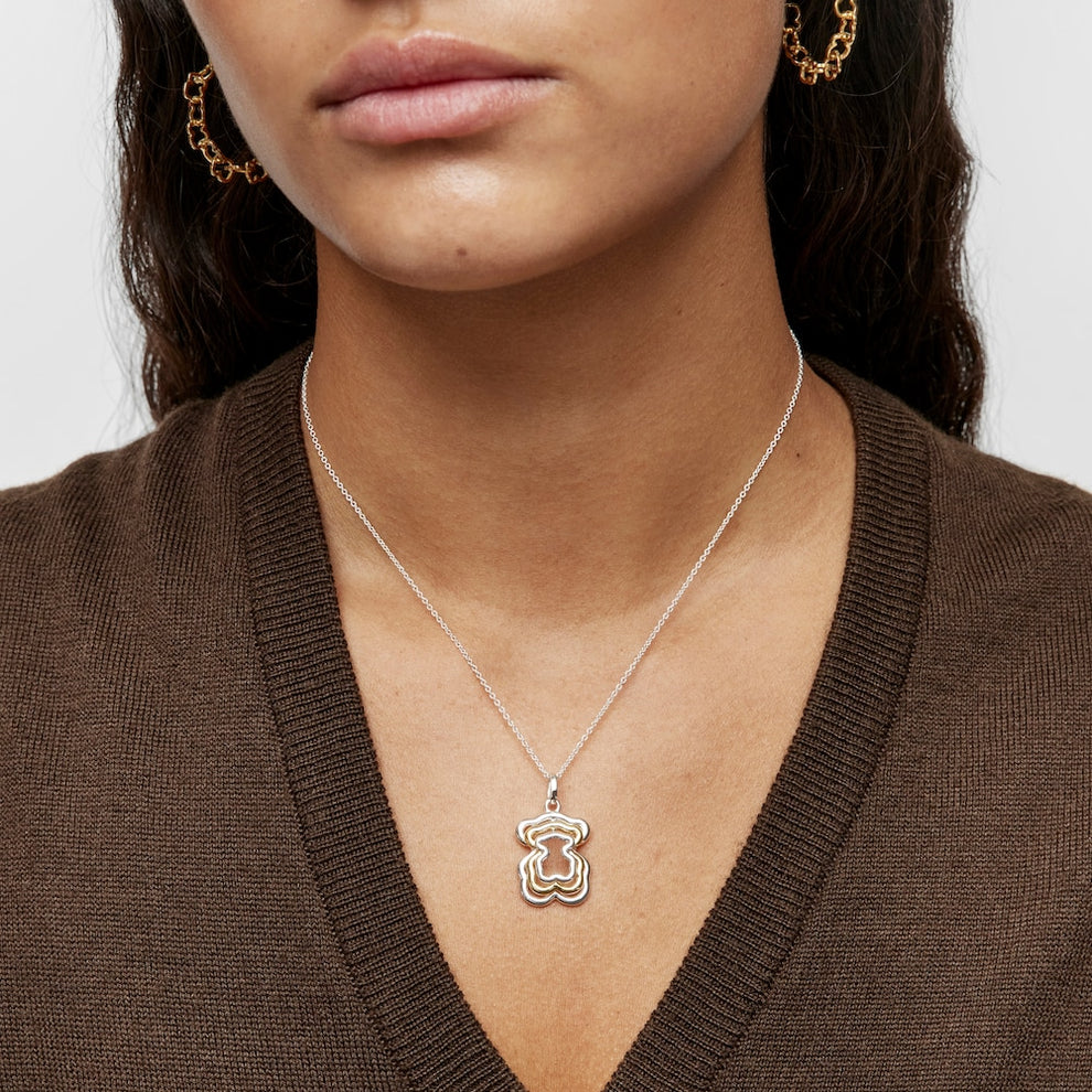 TOUS Bickie triple bear Necklace with 18 kt gold plating over silver and sterling silver. Pendant size 21mm. Necklace length 38-40cm. Spring ring clasp. It is made of sterling silver with 18to23kt gold plating and has a thickness of 3microns. This quality guarantees a greater durability of the jewel.You can buy the Bickie two-tone triple bear Necklace. at the online store. Find out how easy it is to buy necklaces at .
