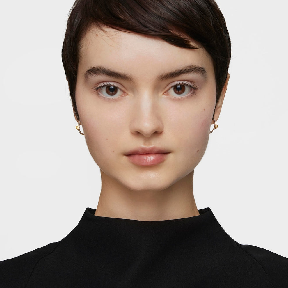My Other Half hoop earring in sterling silver with heart motif in 18kt gold plating over silver. Earring size 19mm. Heart motif size 5mm. Push back. Piece made of sterling silver with 18to23kt gold plating and has a thickness of 3microns. This quality guarantees a greater durability of the jewel.