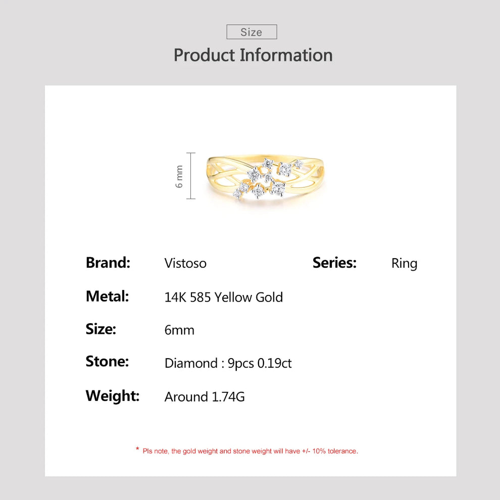 Authentic 14K 585 Yellow Gold Rings For Women Sparkling Diamond Exquisite Wedding Engagement Fine Gifts Jewelry
