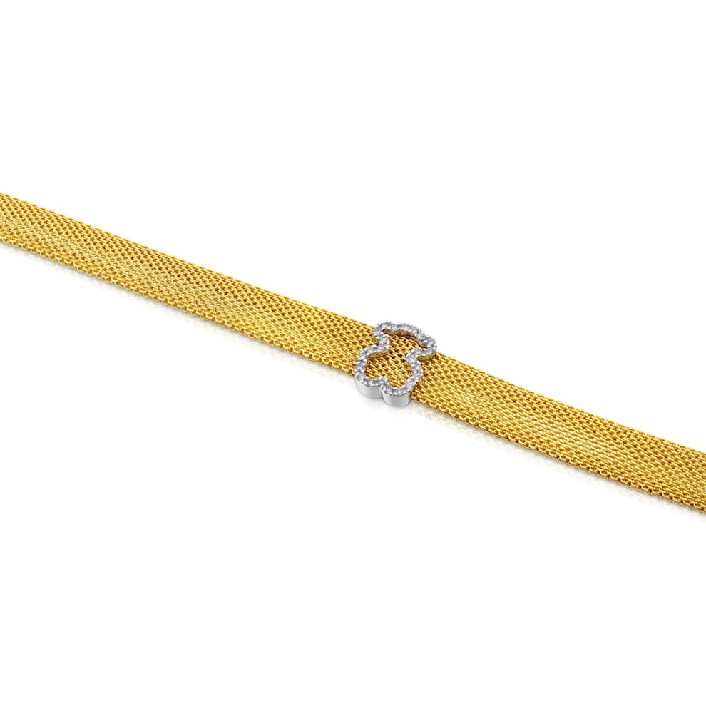 18kt yellow and white gold Icon Mesh bracelet with diamonds. Total carat weight 0,14ct. Motif 8mm. Long 17,50cm.At Tous online you can buy Gold Mesh Bracelet with Diamonds. Discober how easy is to buy bracelets at Tous.